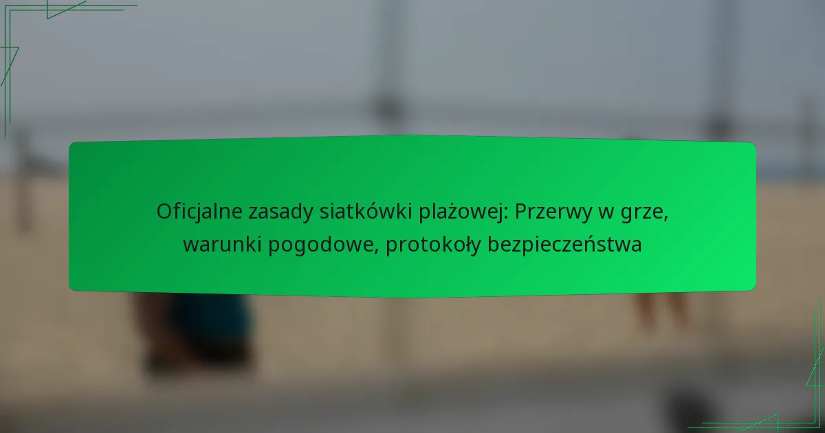 Oficjalne zasady siatkówki plażowej określają kluczowe aspekty, takie jak procedury wznowienia gry, kolejność serwowania i rotacja graczy. Znajomość tych zasad jest niezbędna dla zapewnienia fair play i utrzymania integralności rywalizacji. Wznowienia gry mają miejsce po określonych przerwach, podczas gdy kolejność serwowania określa sekwencję, w jakiej gracze serwują, promując uporządkowane i sprawiedliwe środowisko meczowe.